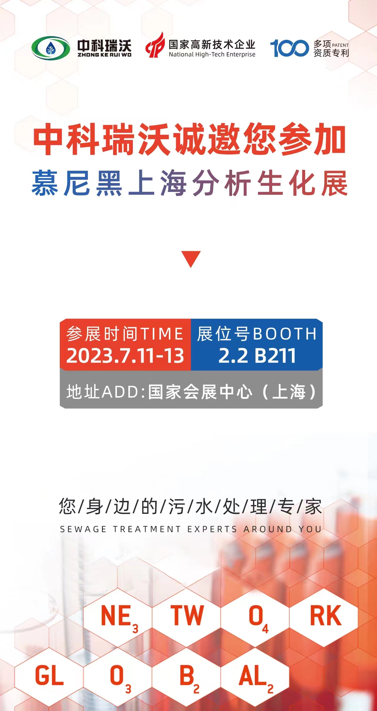 慕尼黑上海分析生化展將于7月11日-13日開展,為期三天,誠邀您蒞臨國家會(huì)展中心中科瑞沃2.2 B211展位,我們將為您提供專業(yè)系統(tǒng)化的實(shí)驗(yàn)室污水解決方案!